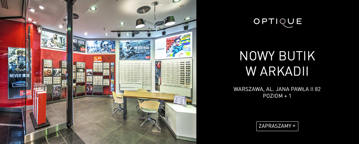 Okulary to po pierwsze zdrowie, ochrona i bezpieczeństwo. Tworząc nasze salony nigdy o tym nie zapominamy. Dlatego też w miejscu, które tworzymy dla Państwa, tak samo ważne jak dobór marek i opraw, jest istnienie w pełni wyposażonego gabinetu optometrycznego, w którym nasi Specjaliści zadbają o komfort widzenia, a także jego bezpieczeństwo, dobierając najlepsze na rynku szkła, marki Essilor. Ponadto naszym Klientom zapewniamy soczewki kontaktowe marki Alcon. Okulary to po drugie sposób wyrażania siebie. Swojej osobowości, tożsamości, sposobu widzenia świata. Rodzaj manifestu tego kim się jest. Stąd nasz wybór marek: kultowy Ray-Ban® - okularowa klasyka, ikona jakości i stylu, jak również utożsamiany ze sportem oraz coraz mocniej z lifestylem - Oakley. Jako ostatni Vogue - znakomity na początku estetycznej przygody z okularami. Z każdej z tych trzech marek posiadamy pełne i tylko aktualne kolekcje, zarówno korekcyjne, jak i przeciwsłoneczne - tym samym nasze butiki oferują zdecydowanie najszerszy wybór tych opraw. Każdy z Państwa będzie mógł zatem znaleźć najbardziej odpowiedni dla siebie model.Po trzecie okulary to przyjemność, zarówno ich wybór, jak i noszenie. Aby tak się stało, zadba o to zespół doradców i Optometrystów, którzy z pełnym profesjonalizmem i prawdziwą przyjemnością odpowiedzą na wszystkie Państwa pytania. Zapraszamy!