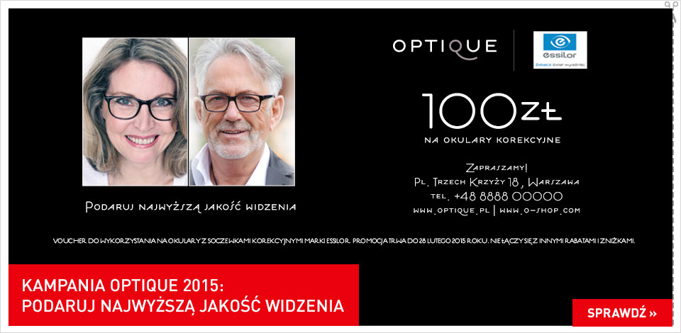*Promocja obowiązuje w butiku stacjonarnym Optique Pl. Trzech Krzyży 18, 00-499 Warszawa oraz sklepie internetowym www.o-shop.com.