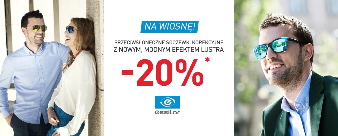 Aktualnie w wyjątkowo korzystnej cenie. Promocja dotyczy soczewek barwionych francuskiej marki Essilor z powłoką lustrzaną i antyrefleksem.